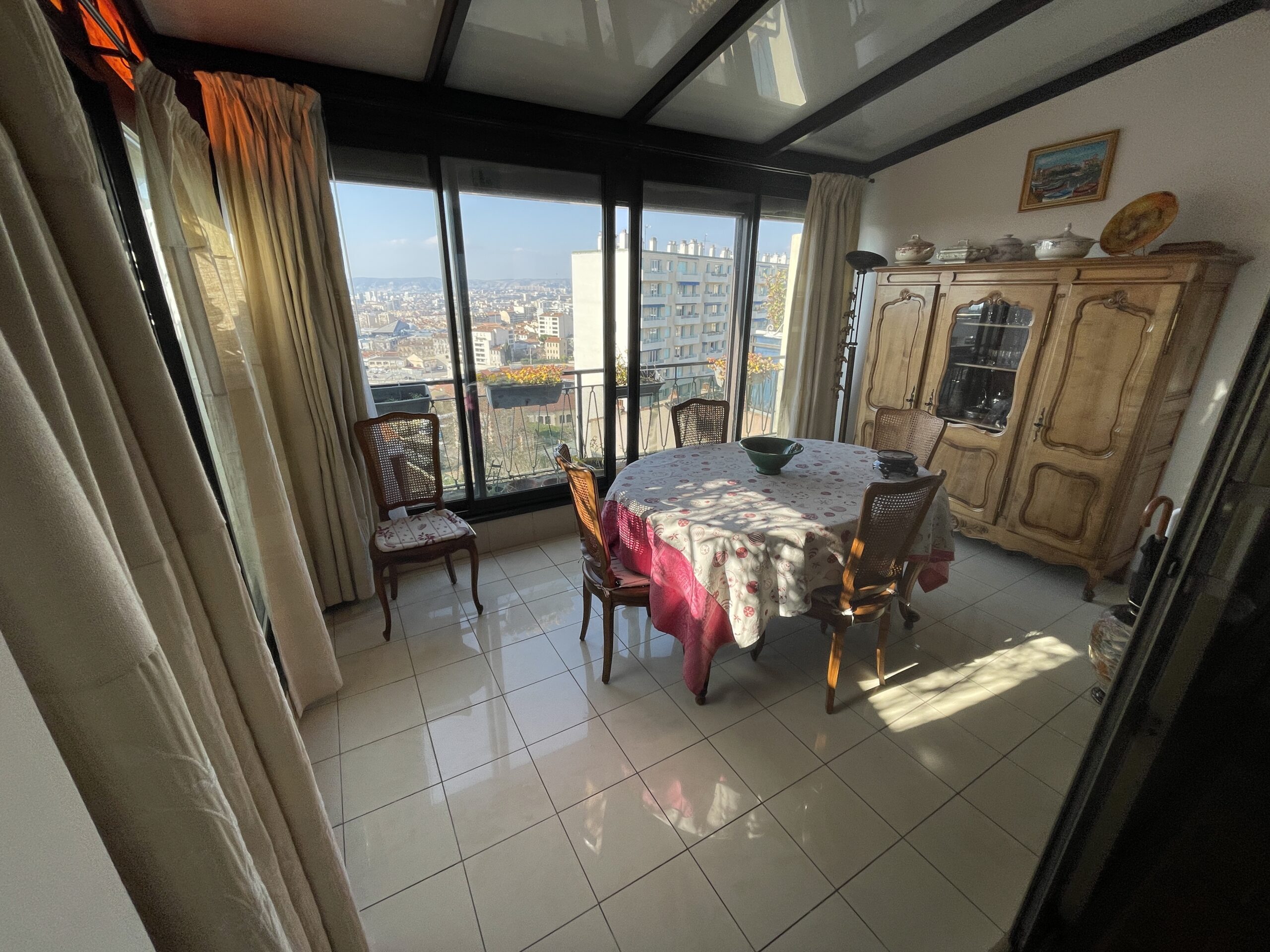 Etude de notaires mise en vente d’ un appartement situe sur le haut du Boulevard Camille FLAMARION/LONCHAMP, 13004. Appartement traversant au 9° et dernier d’ une surface de 67m² avec une terrasse aménagée en véranda de 12m² vue mer , et un balcon sur séjour avec vue sur la ville.