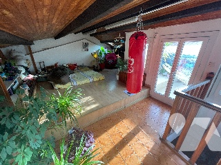 A l’ étage deux chambres avec salle de bain, wc, balcon et une belle chambre aménagée sous comble donnant sur une terrasse. de 7.4m².